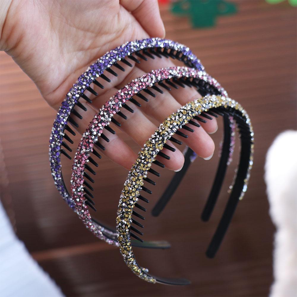 Plastic Rhinestone Headband Shiny Hair Hoop Sweet Thin Hairband Face Wash