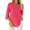 Damenmode Einfarbiges V-Ausschnitt T-Shirt Top mit Schlitzsaum und Relaxed Fit