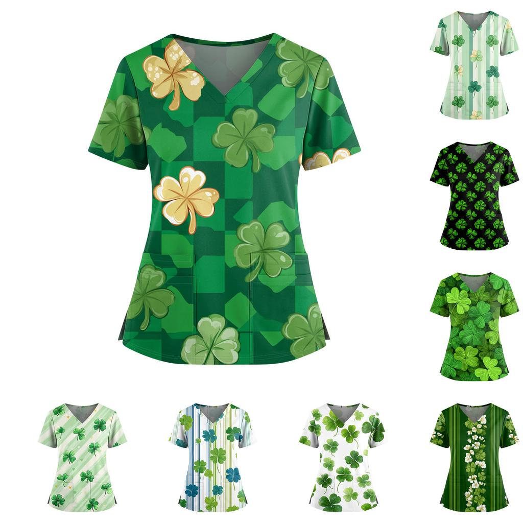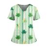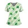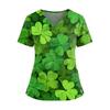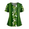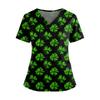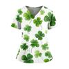 Frauen St. St. Patrick's Day Druck V-Ausschnitt Doppeltasche Kurzarm Uniform Oberteil mit geschlitztem Saum