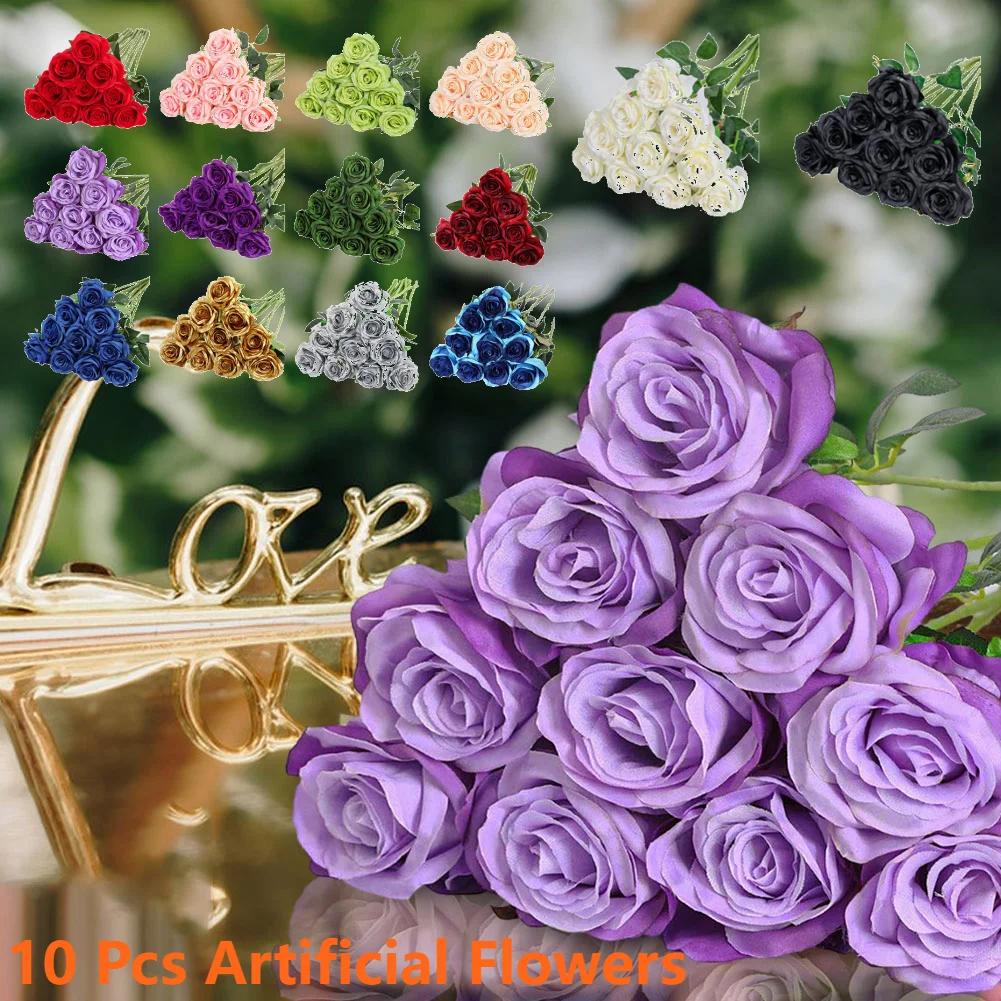 1 Stück Realistischer Rosenstrauß mit künstlichen Stielen Seidenrosen Blumiger Hochzeitsstrauß für Tischdekoration Heimpartydeko