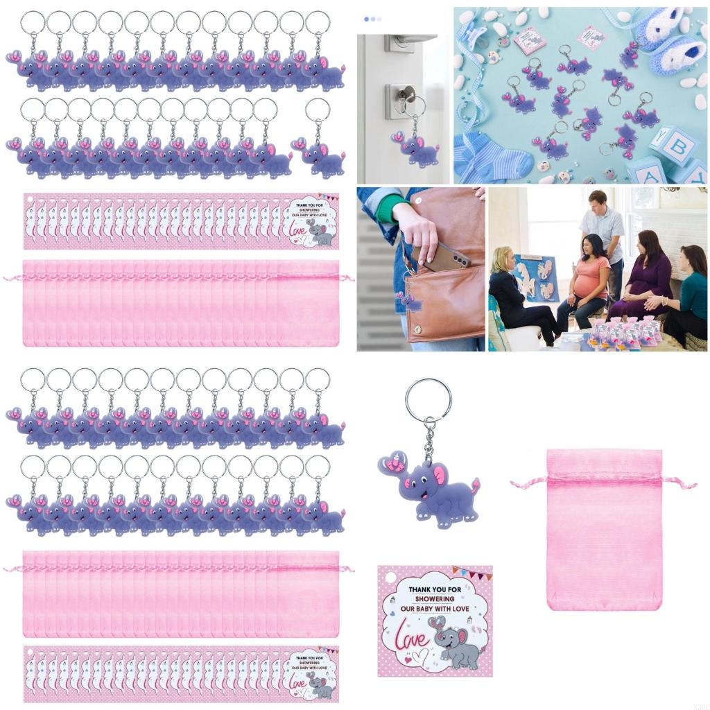 Babyparty Elefant Schlüsselanhänger 24er Pack mit Organza-Geschenktüte Gastgeschenk X3UC