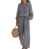 Gefertigt aus weichem, atmungsaktivem Stoff, sorgen das locker sitzende Hemd und die fließenden Hosen für ganztägigen Komfort, ohne den schicken Reiz zu beeinträchtigen.. Durchdachte Details wie ein klassisches Revers, maßgeschneiderte lange Ärmel und zulaufende oder gerade geschnittene Hosen verbessern sowohl die Passform als auch die Raffinesse.. Erhältlich in mehreren Farben, eignet sich dieses Set sowohl für professionelle Umgebungen als auch für entspannte Ausflüge und ist somit eine unverzichtbare Ergänzung für jede Garderobe.