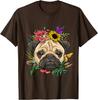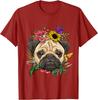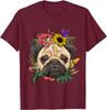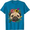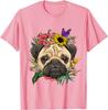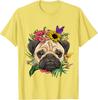 Pug Face Flower Crown Butterfly Graphic Tee Soft Cotton Casual Trip T-Shirt