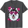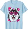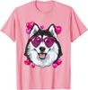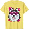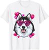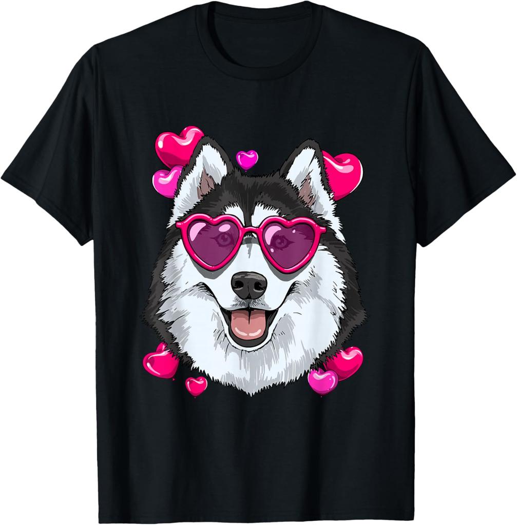 Husky Dog Heart Sunglasses Valentines Day Graphic Tee Soft Cotton Casual Short Sleeve Shirt