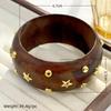 Vintage Ethnische Holzarmspange für Damen Punk Geometrisch Nietenperlen Breite Armreifen Übertriebener Handschmuck