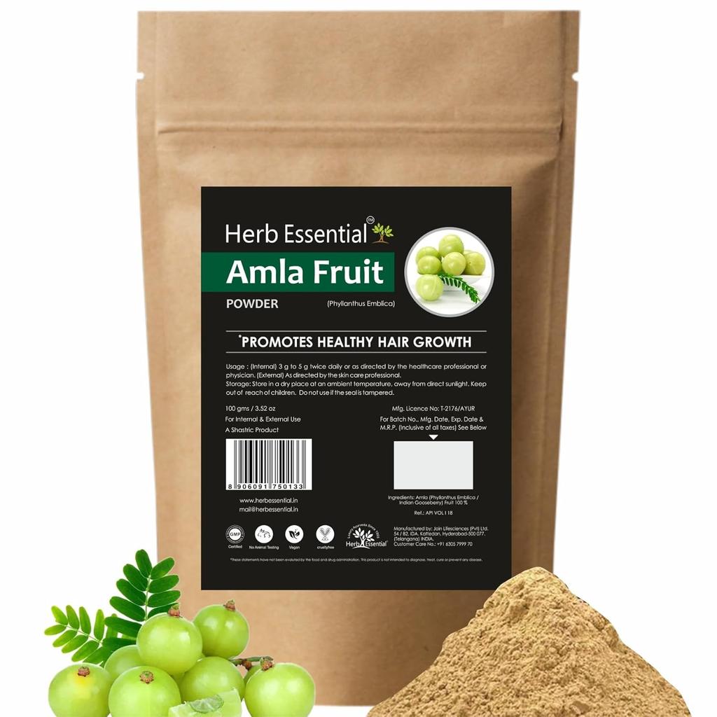 Herb Essential Natural & Traditional Pure Amla Powder, For Hair Loss | 100gm 0.2lbs