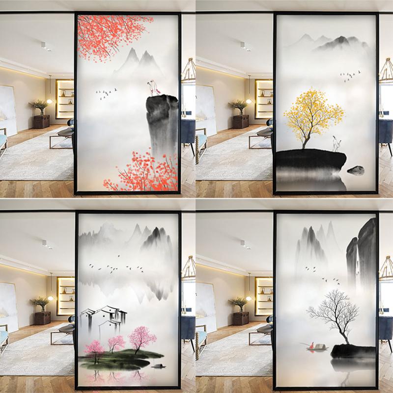 Chinesische künstlerische Landschaftsmalerei Fensterfolie Undurchsichtig Statisch haftend Ohne Klebstoff Dekor Glasaufkleber Fenster-Sichtschutzfolie