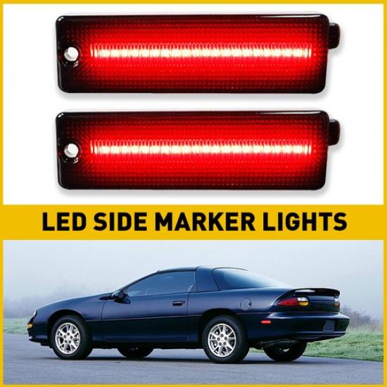 For 93-02 Chevy Camaro Smoked Red LED Rear Side Bumper Marker Lights 2pcs