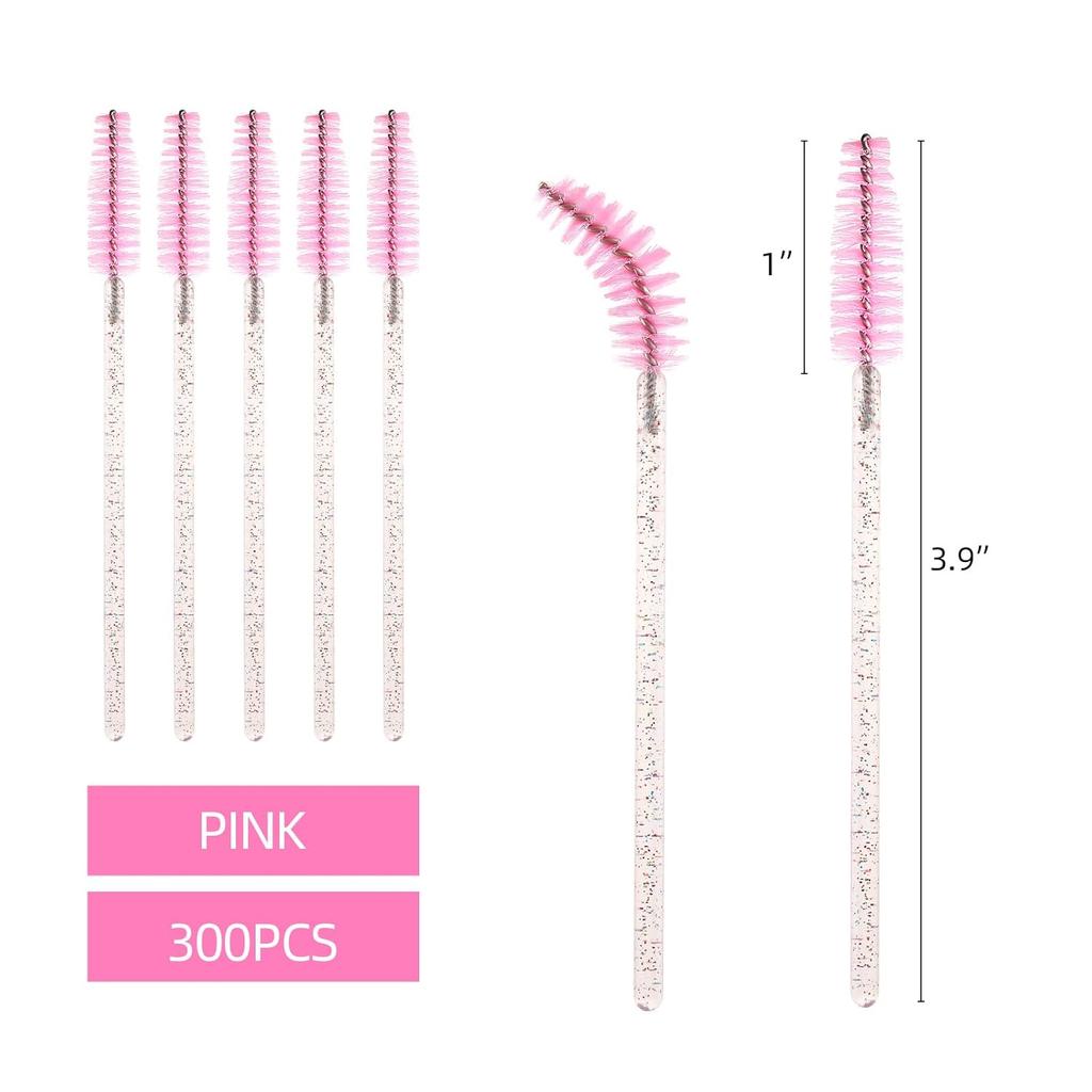 Tbestmax 300Pcs Disposable Eyelash Brush, Mascara Wands Makeup Brushes Applicators Kits for Eyelash Extensions and Eyebrow - Colorful Handle, Pink