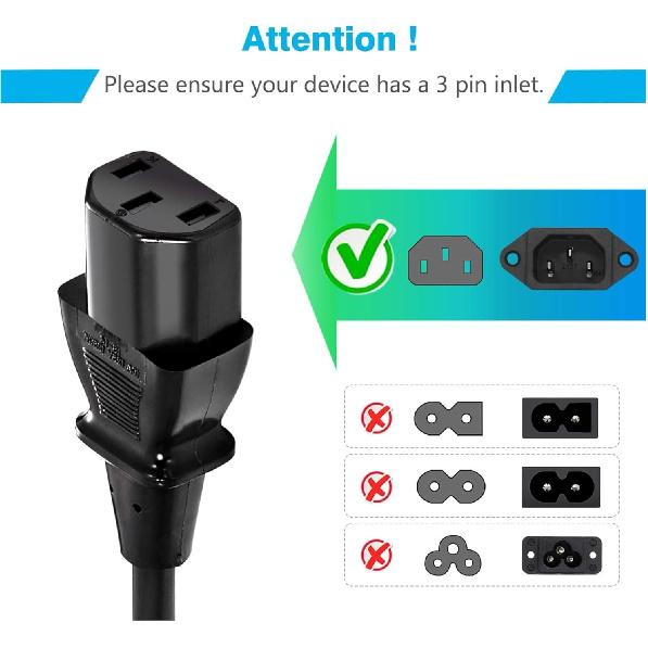 Standard 5ft (1.5m) 10 Amps 250 Volts Black 3 Prong AC Power Cord Cable for Electronics, TV, Computer, Printer, Radio, Monitor, Samsung, Dell, Vizio,
