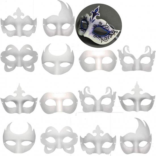 14 PCS DIY White Paper Half Face Masquerade Mask Craft Mardi Gras Mask Plain Mask Paintable Blank Halloween Party Mask