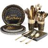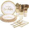 175PCS Happy Birthday Plates and Napkins Party Supplies, Paper Pink and Rose Gold Plastic Forks Knives Spoons Serve 25 Guests for Girl Women