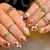 30pcs Thanksgiving Press on Nails Round Head Fake Nails Fall Cute Turkey Leave False Nail Short Glue on Nails with Colored Turkey Design Glossy