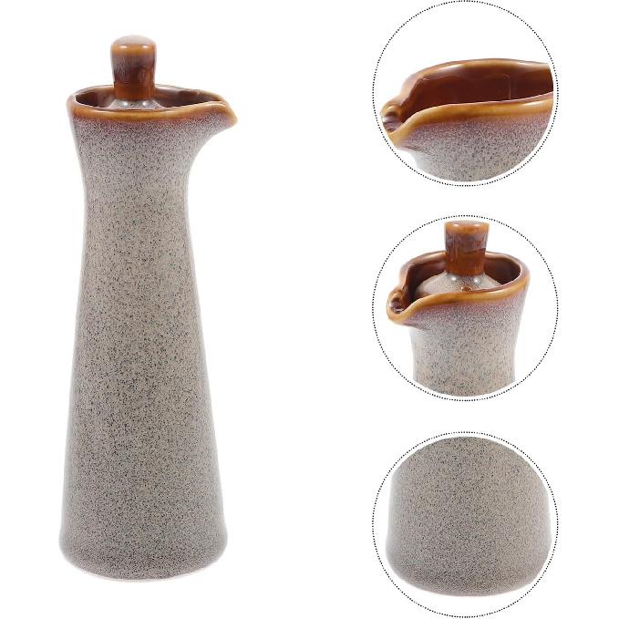 Hemoton Keramik Ölflasche Japanischer Stil Olivenöl Sojasaucenspender Würzmittel Essig Ausgießer für Heimküche Beige