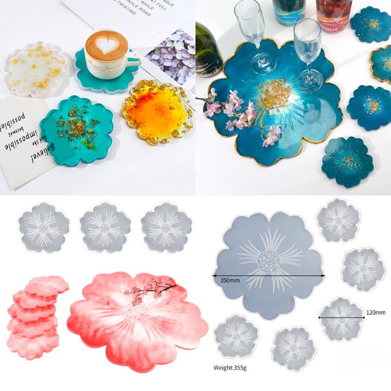 Coaster Silicone Molds Floral Cup Mat Handmade Mould for Epoxy Resin Casting Agate Slices Cup Tray Holder DIY Desk Decor