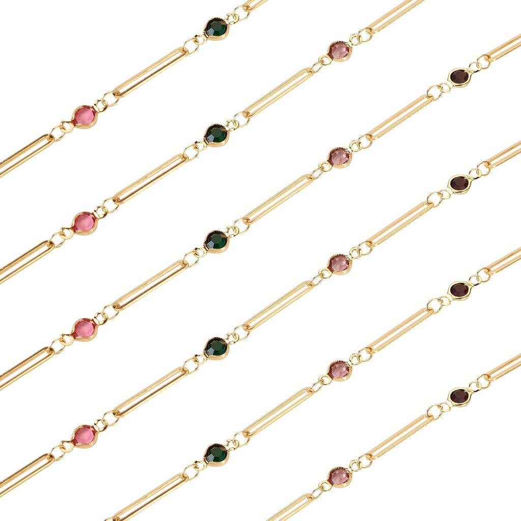 Pandahall 6.56 Feet 16K Gold Plated Stainless Steel Chains Rhinestone Paperclip Chains Crystal Chains Jewelry Craft Chains for DIY Necklace Bracelet