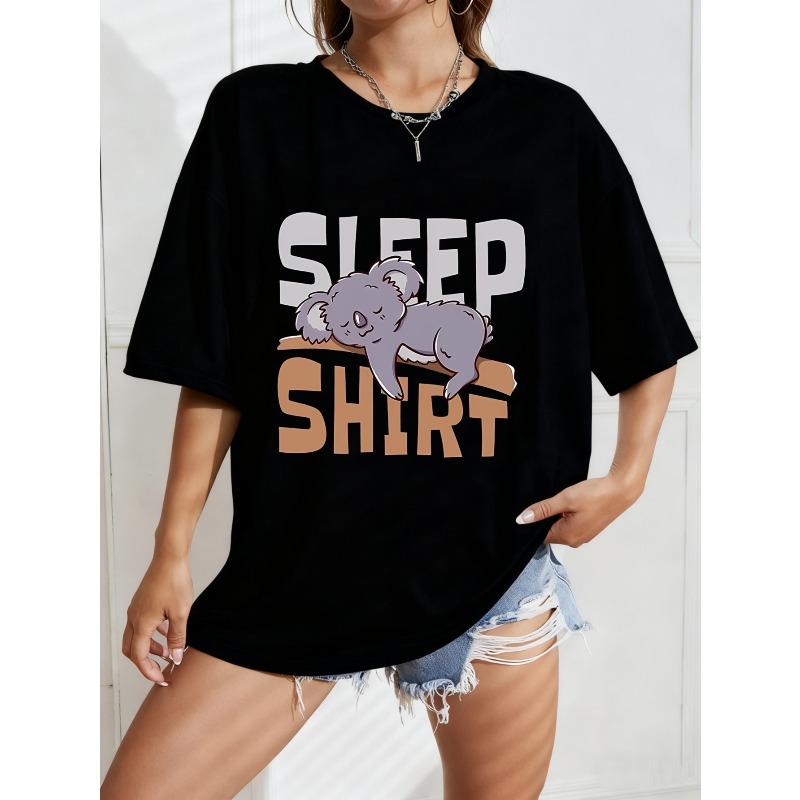 Niedliches Koala Schlafshirt Weißes Tierdruck und Text Grafik-T-Shirt für Freizeitkleidung und Entspannung