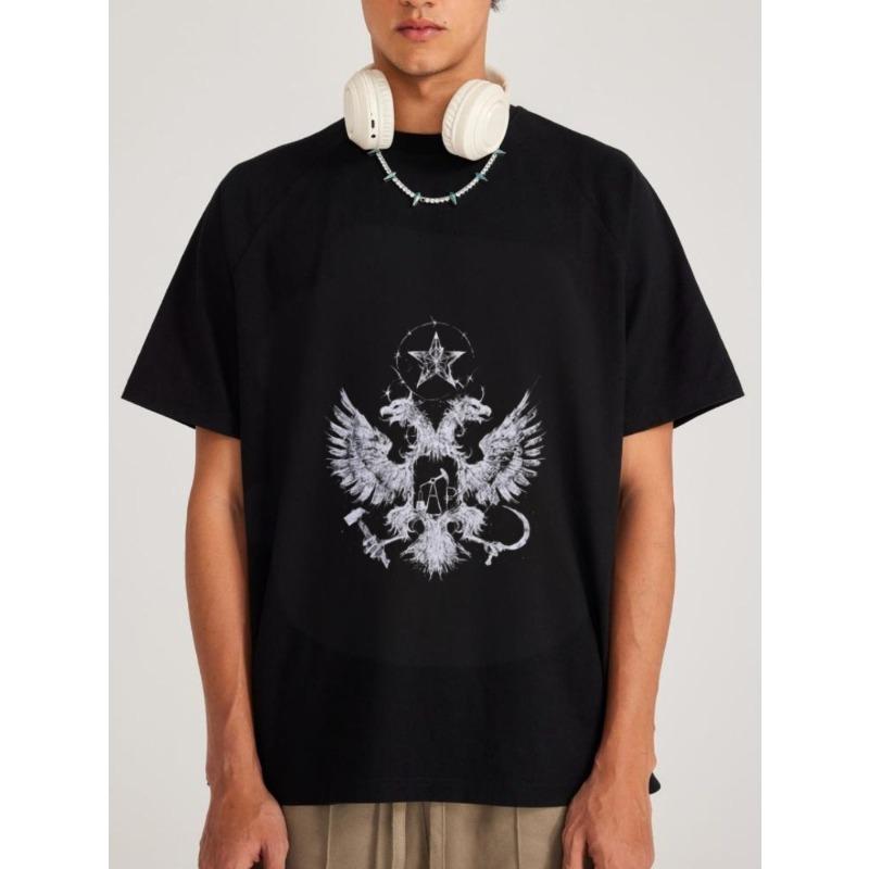 Weißes T-Shirt mit Adler- und Stern-Print für Freizeitkleidung