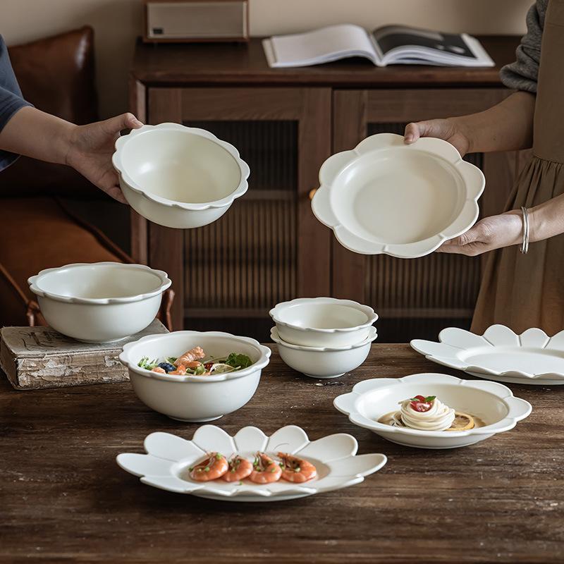 Nordischer Stil Creme Spitze Keramikschale Obstschale Salatteller Fischteller Haushalt Reis Schüssel Gemüseschale Suppenschale Geschirr