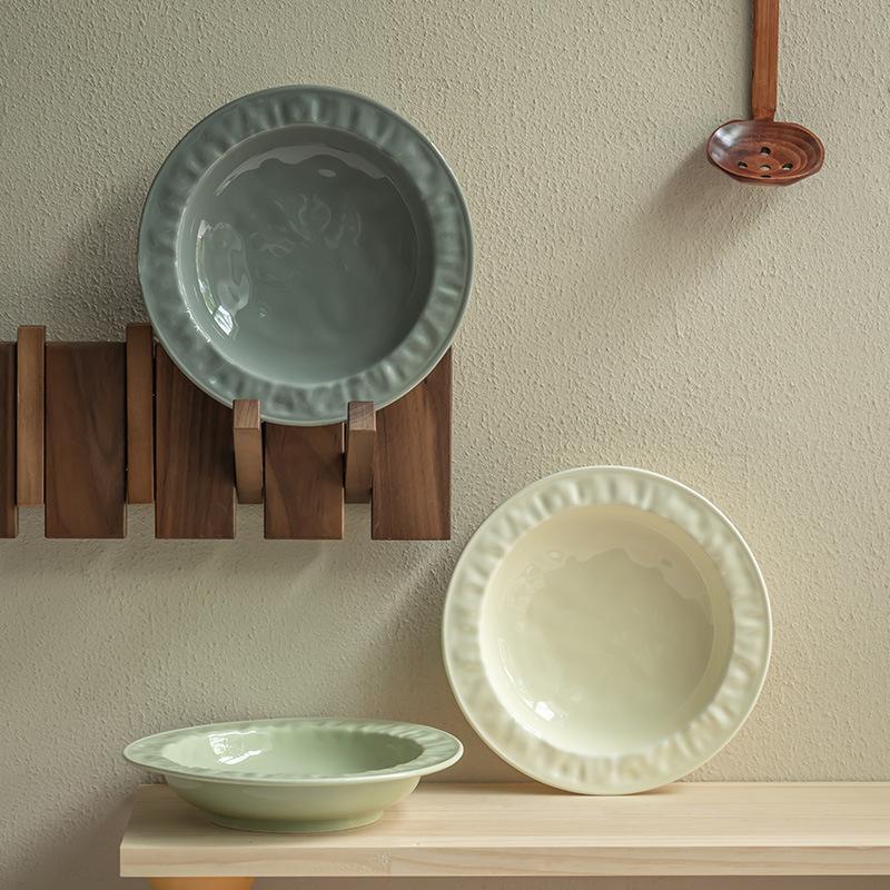 Cream Straw Hat Plate Ceramic Western Food Plate Pasta Plate Household Tableware Solid Color Breakfast Plate Vegetable Plate Salad Plate