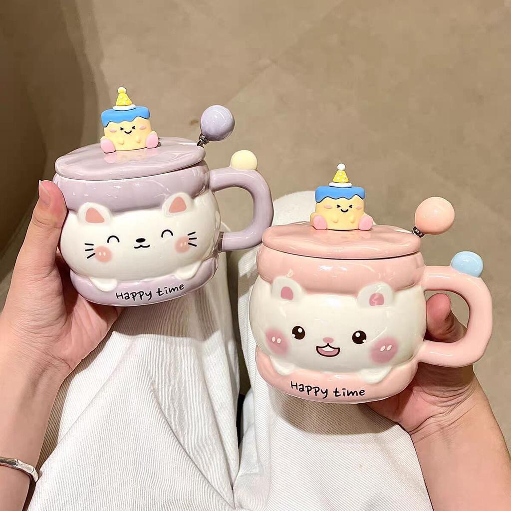 Color: Pink Cake Rabbit (Cup + Lid + Spoon), Purple Cake Kitten (Cup + Lid + Spoon), Brown Cake Bear (Cup + Lid + Spoon), Pink Cake Rabbit (Cute Portable Gift Box: Cup + Lid + Spoon), Purple Cake Kitten (Cute Portable Gift Box: Cup + Lid + Spoon), Brown Cake Bear (Cute Portable Gift Box: Cup + Lid + Spoon)