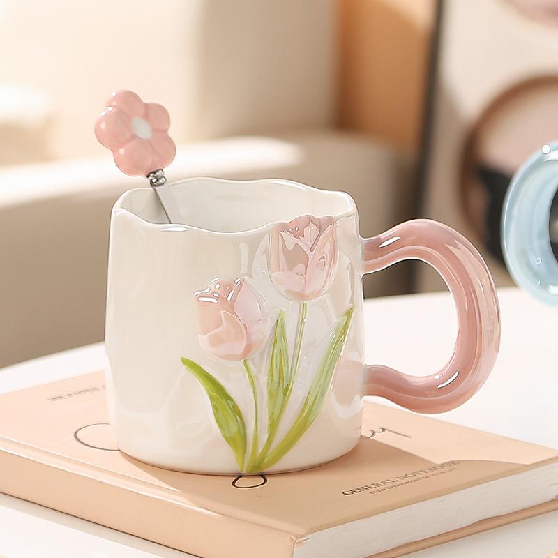 High-Value Hand-Painted Tulip Water Cup Mug Cup Ceramic Bridesmaid Souvenir Opening Event To Send Customers
