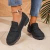 Damen Loafer mit breiter Weite und Plateau, Flats mit Blockabsatz im britischen Stil, Vintage Freizeitschuhe für Damen