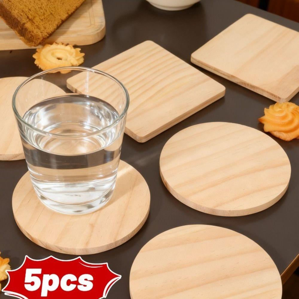 5 Stück Massivholz Kaffeetassen-Untersetzer Hitzebeständig Anti-Rutsch Tassenunterlage Wasserbecher-Basis DIY Handwerk Malerei Holzgravur Dekoration