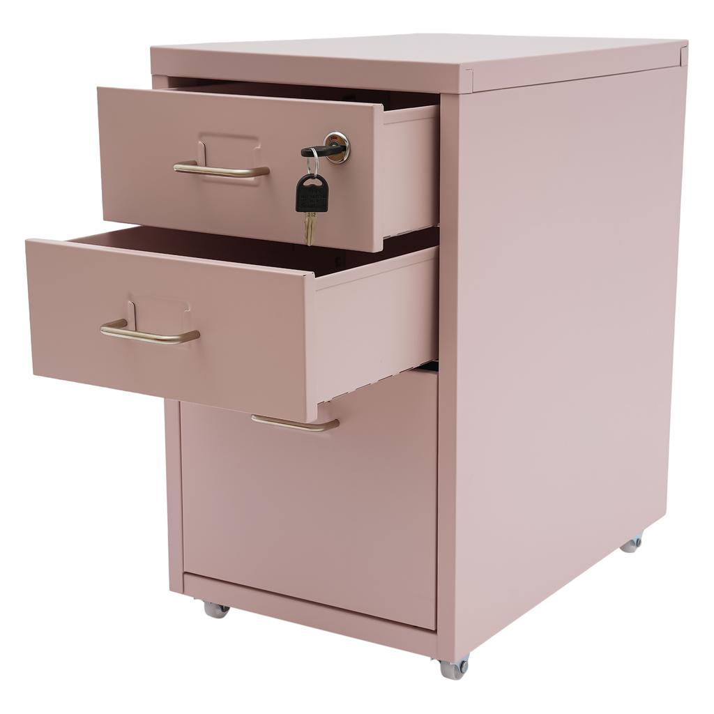 3 Drawer Removable Vertical File Cabinet Pink Metal Mobile File Cabinet,Office Storage Cabinet with Lock and Silent Slides