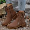 Winter Pleated Round Toe Mid-Heel Martin Boots 2025 New Plus Size Side Zipper Booties Women