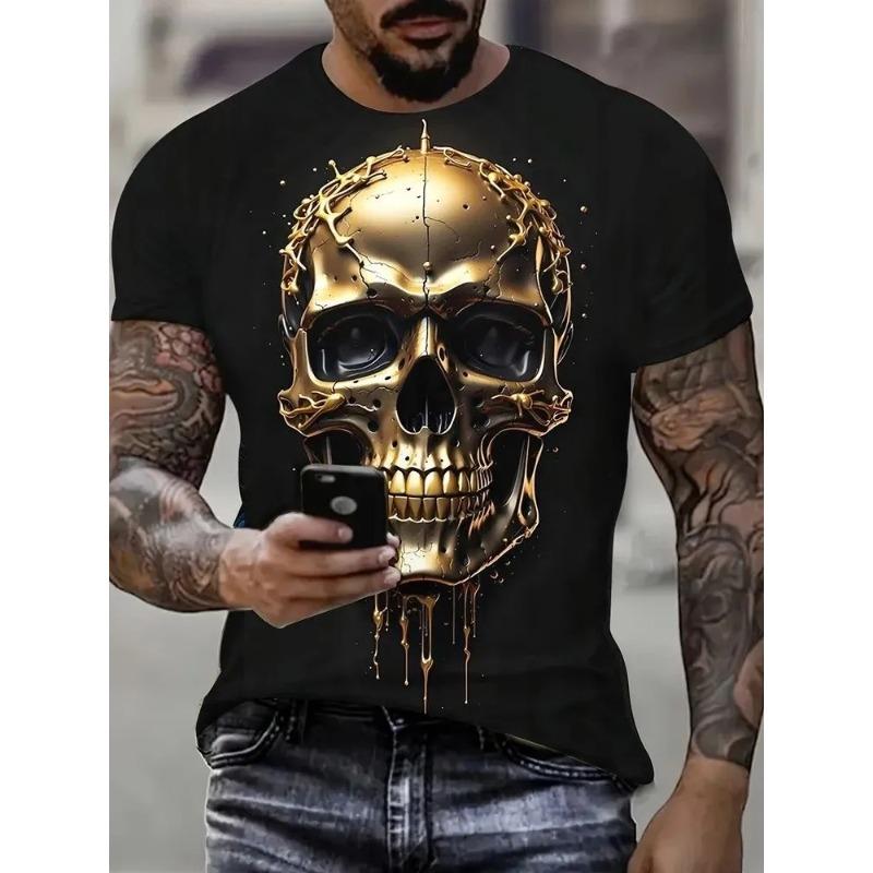 Men's 3D Printed T-Shirt Skull Pattern Print Short Sleeve O-Neck Pullover Casual Top Street Fashion T-shirt