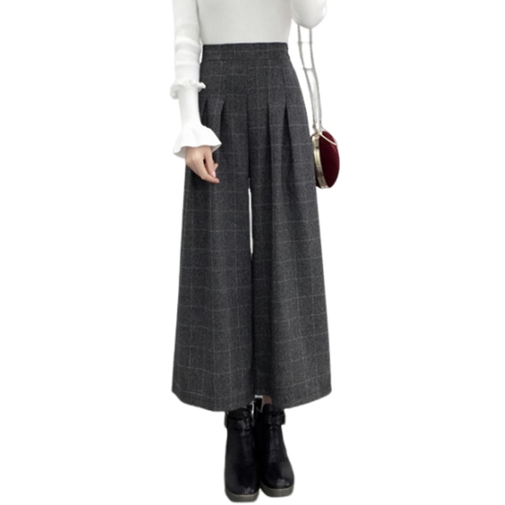 WoauNuiHll Gaucho Cropped Locker Übergrößen Uni Perfekt für Alltag und Winter Damen Weite Hosen, Hoher Bund, Kariert, Länge, Passform,