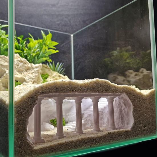 Dieses Versteck mit seinen breiten Tunnelöffnungen gewährleistet einen sicheren Durchgang für kleine Fische und Garnelen und bietet den meisten kleinen bis mittelgroßen Wassertieren ausreichend Platz, ohne dass die Gefahr besteht, dass sie sich verfangen.. Die Höhlenverstecke hinter römischen Säulen verfügen über mehrere Eingänge und bieten so wichtigen Schutz für empfindliche Arten wie Kampffische, Kraken und Kristallgarnelen..