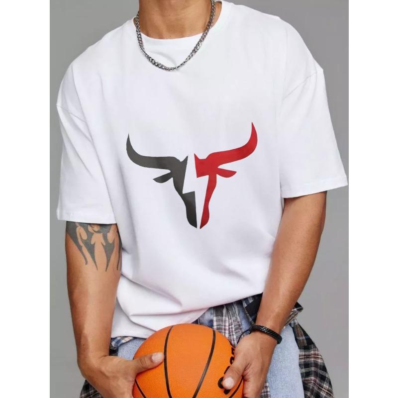 Weißes T-Shirt mit Stierkopf-Grafikdesign für Freizeitkleidung