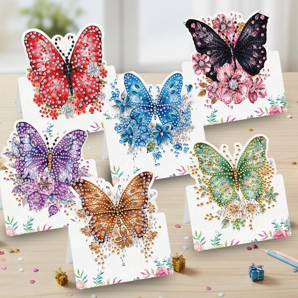 6 Stück Blume Schmetterling DIY Strass Diamant Kunst Mosaik Postkarten mit Umschlägen Handgemacht für Familie Freunde Urlaub Geburtstag