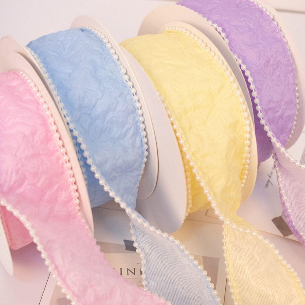 Pearl Pleated Gradient Ribbon 4cm Width 5 Yards Length Bubble Ribbon Edge Trim Embroidery Lace Snow Ribbon Cake Packaging
