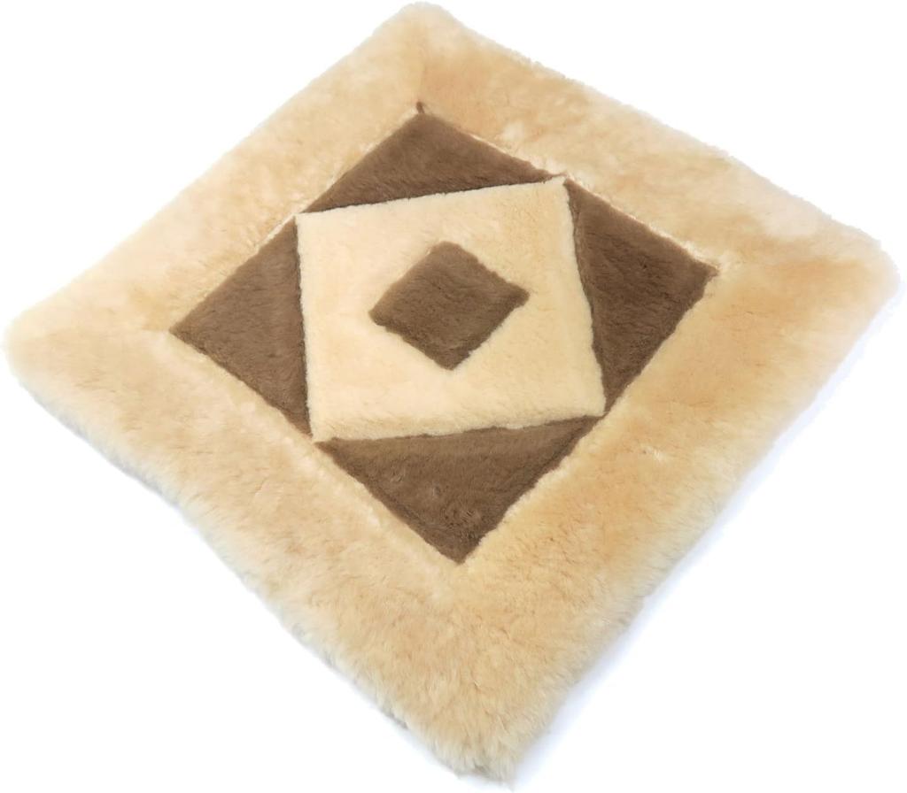 FURFURMOUTON High-Density Sheepskin Seat Cushion, European Design, High-Low Type, for Living Rooms, Chairs, and Cars (43x43cm, Beige)