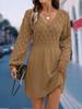 Scale Pattern 3D Knitted Dress New V-Neck Beach Dress A-Line Long Sleeve Dress