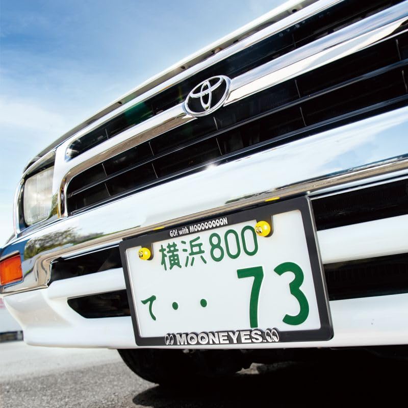 MOONEYES Raised MOONEYES Logo License Plate Frame, New Standard Compliant (Set of 2)