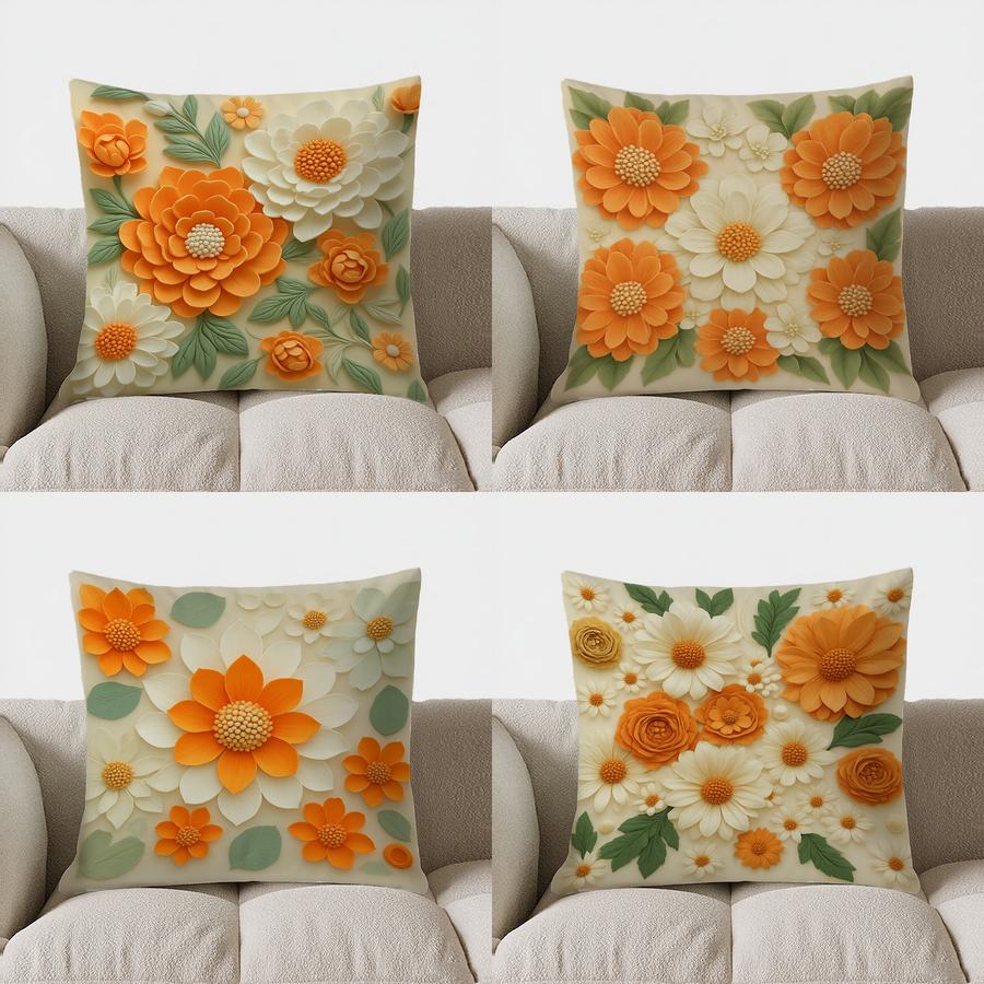 Home Decor Floral 3D Embossed Throw Pillow For Home Decor Pattern Cushion Cover Suitable For Sofa Bedroom Car Pillow Cover