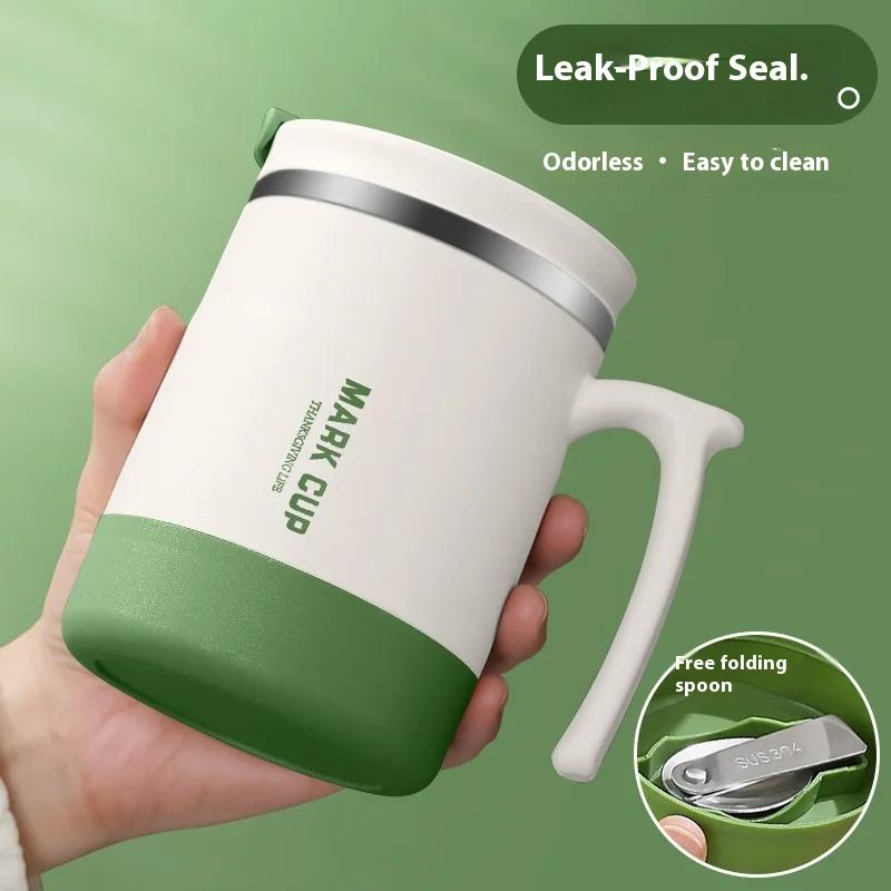 304 Edelstahlbecher mit Deckel und Löffel Büro-Wasserbecher Hochästhetische Kaffeetasse, Frühstückstasse Wasserflaschen