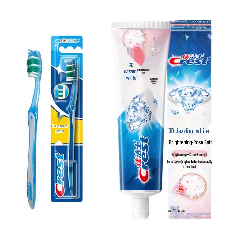 Crest Bunte Kristall Zahnbürste & 3D White Rosen-Salz Zahnpasta Set