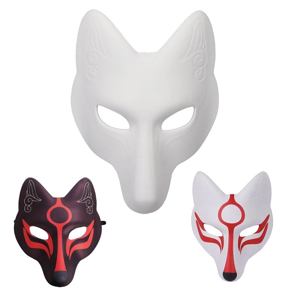 Fuchsmaske DIY Tiermasken für Maskerade Bemalbar Halloween-Party Wolf Cosplay Kostümzubehör