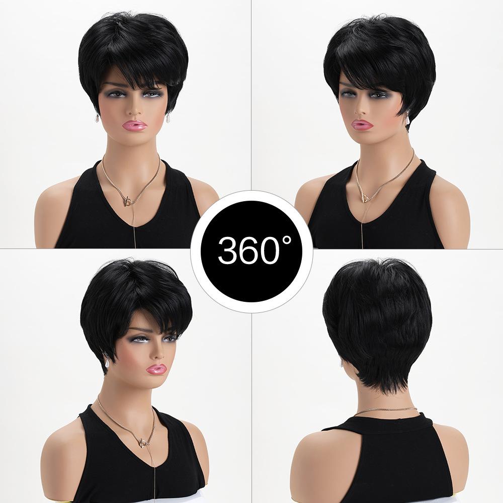 Stylish Women Short Layered Wave Hair Synthetic Black Wigs with Bangs for Daily Cosplay Lolita Heat Resistant Fibre