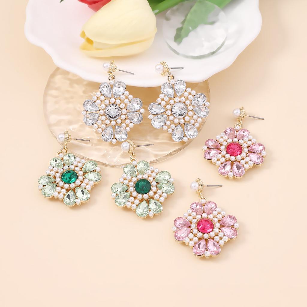 Bohemian style diamond-set rice beads colored four-leaf clover floral flower earrings, temperament imitation pearl earrings
