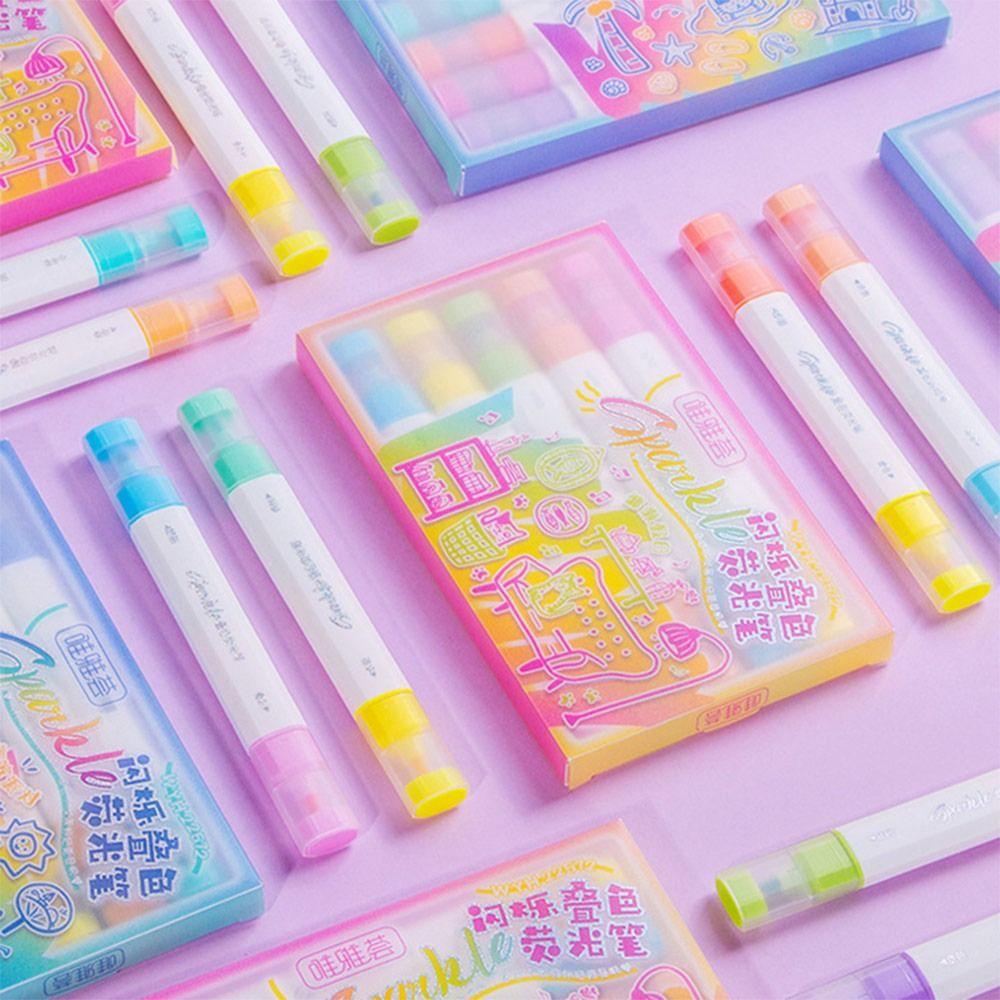 2. Innovative color stacking and flashing effects: The fluorescent pen in the set supports a unique color stacking function. By overlaying and drawing on existing colors, it can create new eye-catching colors and visual layers, making the marked key points or creative patterns more personalized and attractive. It also has a micro flashing effect, adding writing fun.