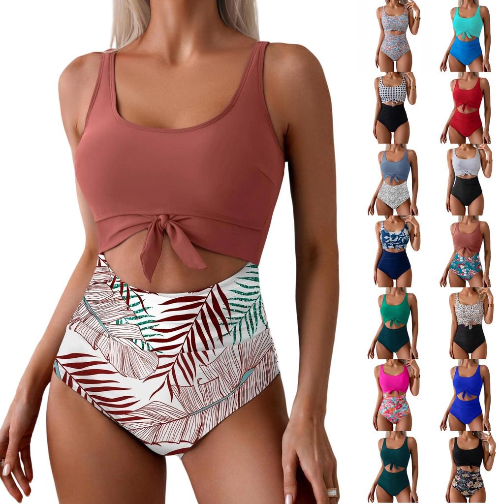 Women's Slim Fit Hollow-Out Tie-Waist One-Piece Swimsuit