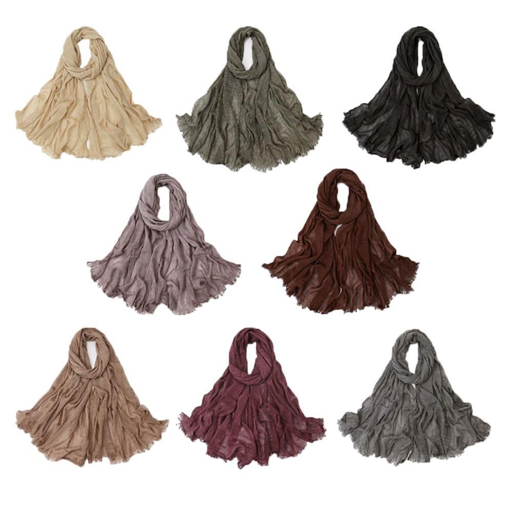 Solid Color Crinkle Hijabs Tie-dye Rayon Female Turban Women Muslim Scarf Shawls Four Seasons
