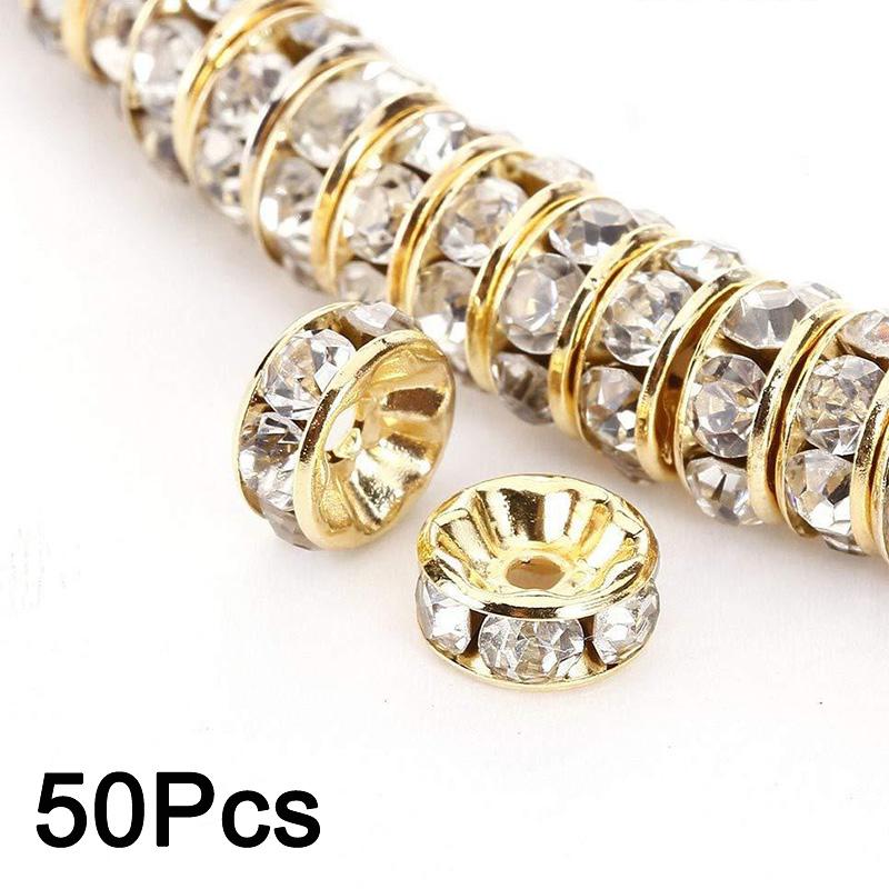 50Pcs Diamond-Encrusted Wheel Spacer, 8mm Bead Spacing, DIY Material, Handmade Jewelry Accessory For Bracelets And Necklaces