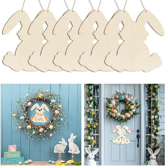 5 Pcs 11.6" Wooden Easter Ornaments to Paint Large Size Bunny Cutouts DIY Blank Unfinished Wood Discs Ornament Bunny Door Sign for Home Crafts